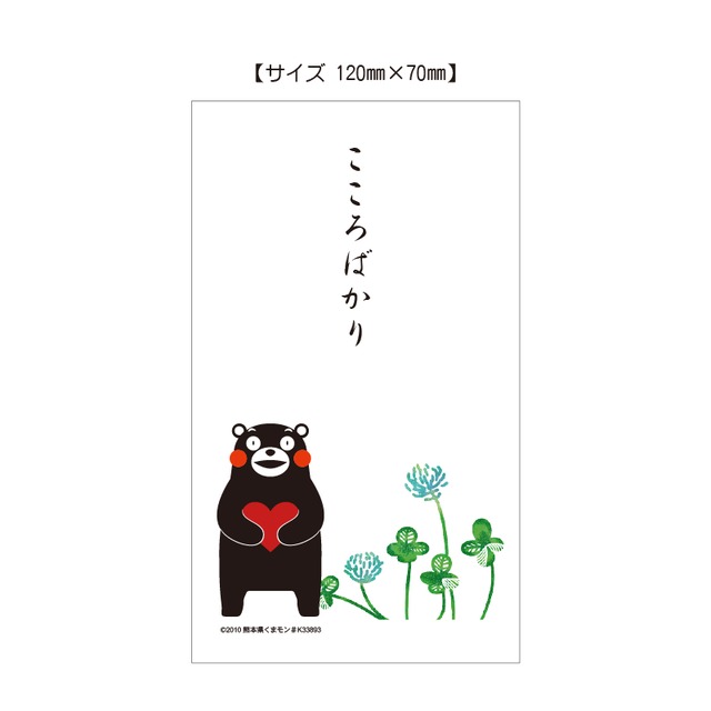 心ばかりのお祝いに、くまモンのかわいいポチ袋です!! 1セット5枚入りでの販売になります。 サイズ : 横70×縦120mm(お札三つ折り) くまもとサプライズキャラクター くまモン Ⓒ2010熊本県くまモン♯K33893