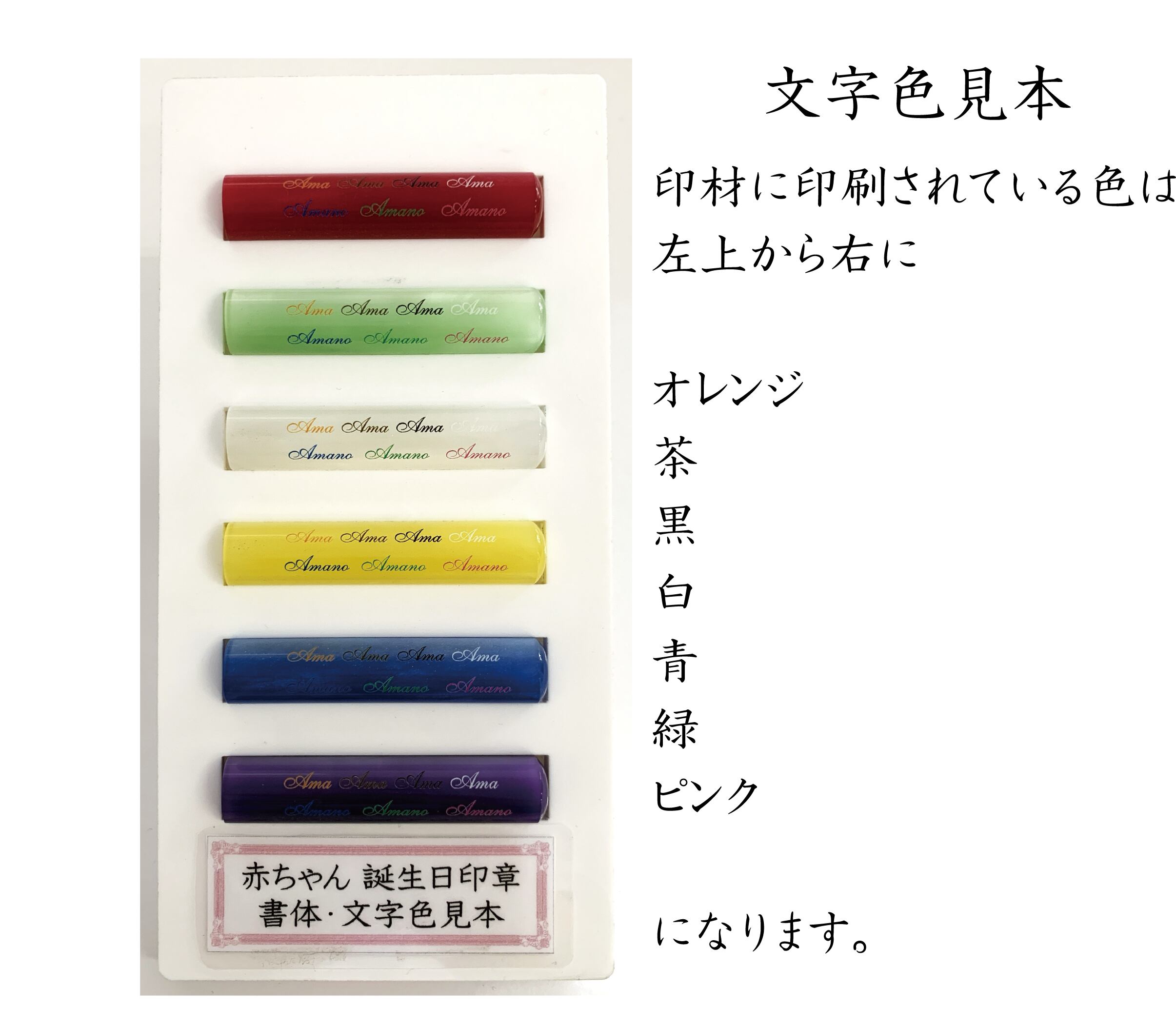 鮮やかな色で人気のパールグラス印材にお子様の生まれた記録をお入れします。