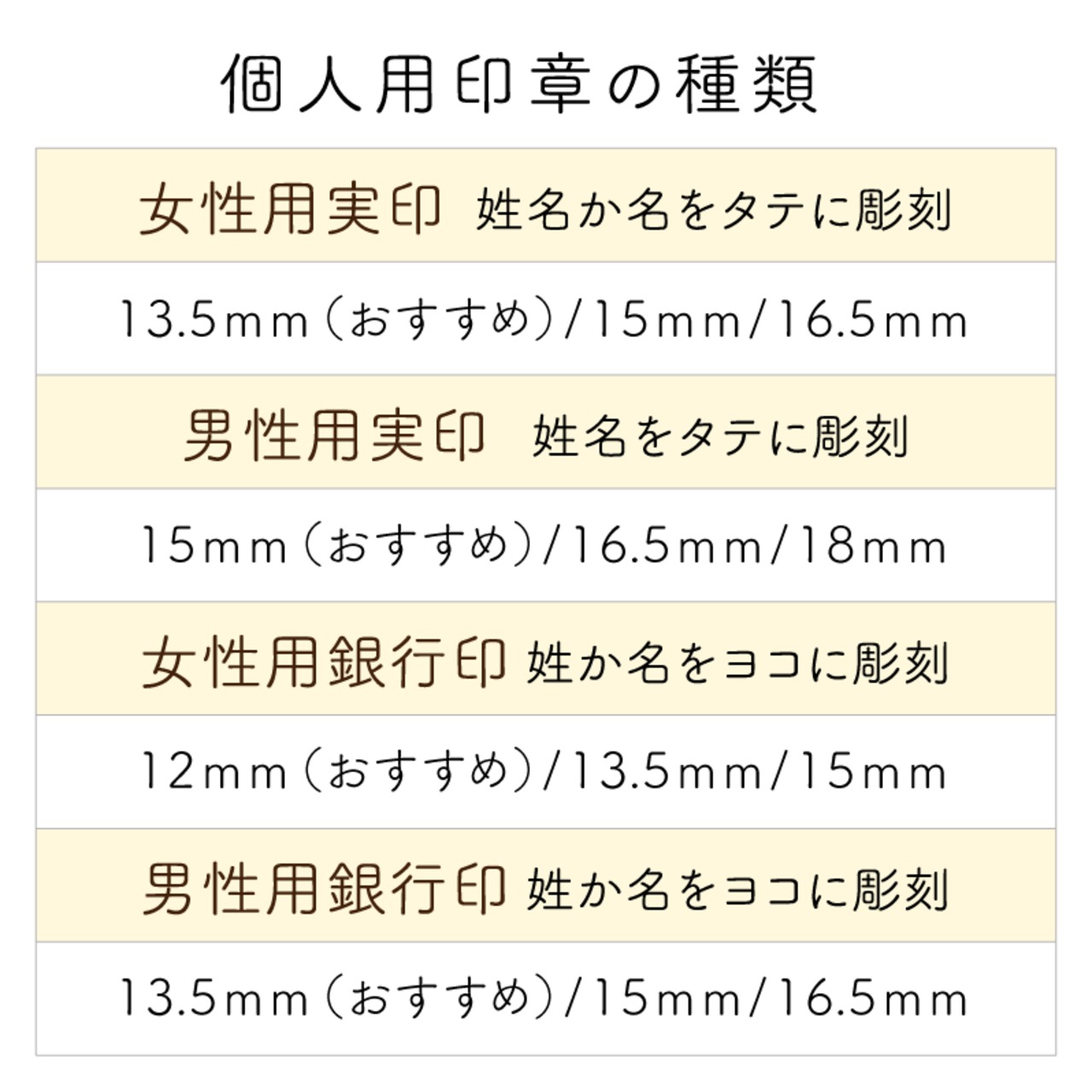 女性用実印では、未婚の女性の方は、【名】のみを彫刻される場合もあります。