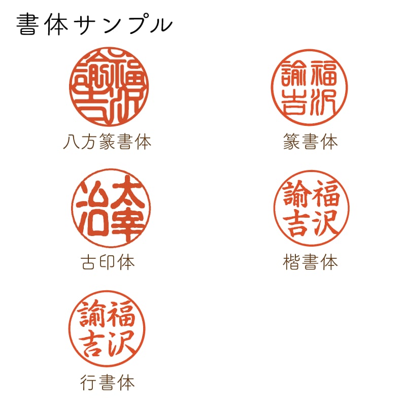 実印のような姓名を刻印する印章では、八方篆書体・篆書体をお奨めします。 八方篆書体のナナメ彫刻はできません。