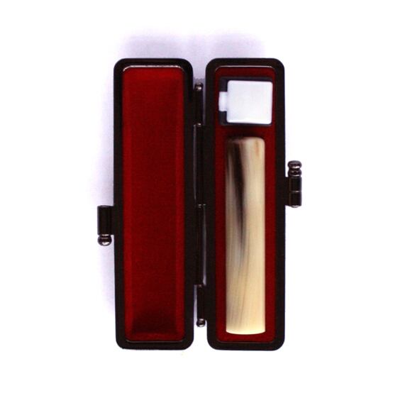 アメ色のきれいな印材で女性にも喜ばれます。黒い部分が少ないほど高価になり、人気もあります。弾力があり欠けにくい印材です。